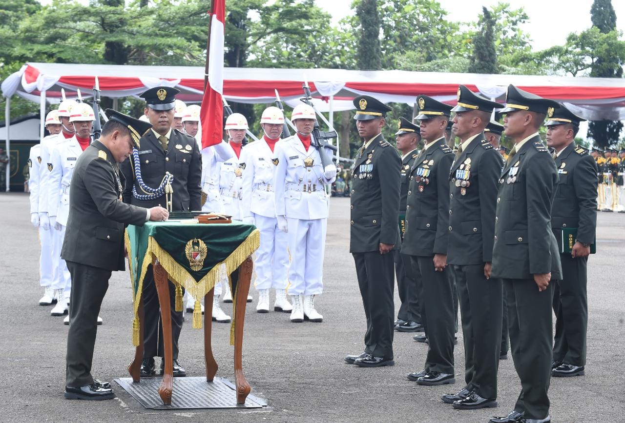 MetropolitanPost.id – Kepala Staf Angkatan Darat (Kasad) Jenderal TNI Dr.Dudung Abdurachman melantik 1.092 Perwira Muda abituren Pendidikan Pembentukan Perwira (Diktukpa) TNI AD Program Diploma-3 (Ahli Madya) Gelombang II TA 2022 di Bumi Panorama Sekolah Calon Perwira Angkatan Darat (Secapaad) Bandung, Jumat (23/12/2022).