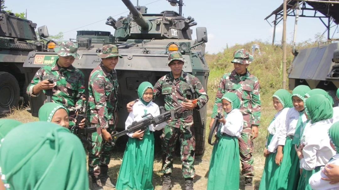 Siswa SD Serbu Kendaraan Tempur Kikav 8 Divif 2 Kostrad