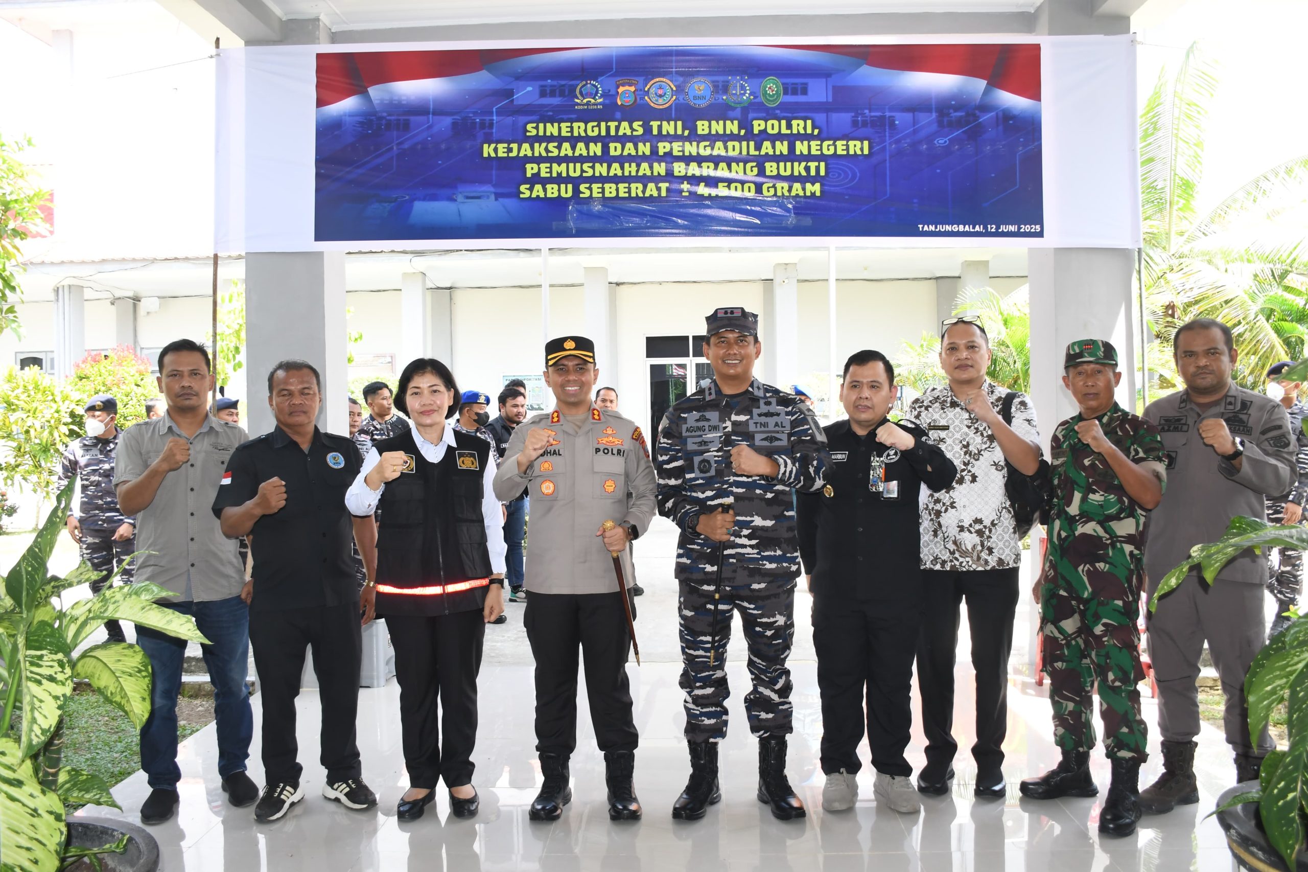 TNI AL, Tanjung Balai,- Wujud nyata komitmen dalam memberantas peredaran gelap narkotika ditunjukkan melalui sinergi lintas institusi di wilayah Tanjung Balai Asahan. Bertempat di Markas Komando Lanal Tanjung Balai Asahan, telah dilakukan pemusnahan barang bukti narkotika jenis sabu seberat 4.500 gram, Kamis (12/06/2025).