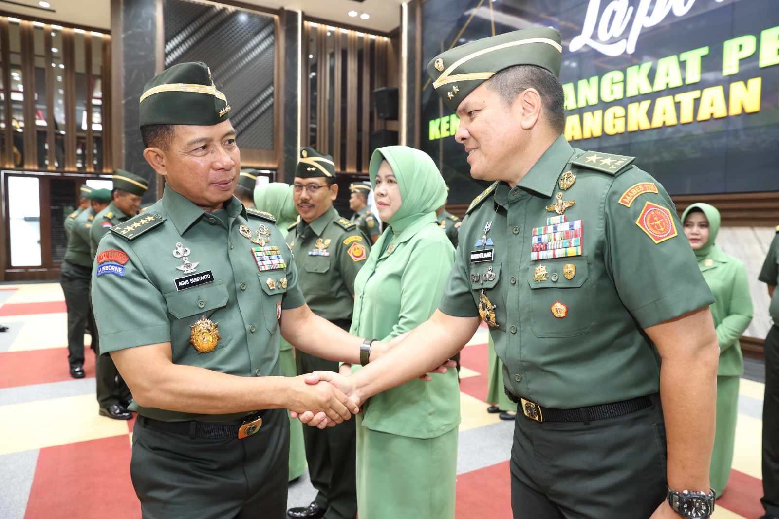 MetropolitanPost.id – Lima Kolonel TNI AD pecah bintang (naik pangkatnya ke Perwira Tinggi / Pati) menjadi Brigadir Jenderal TNI (bintang satu), sementara enam Pati TNI AD menjadi Mayor Jenderal TNI (bintang dua), dalam acara Laporan Kenaikan Pangkat Pati yang dipimpin Kepala Staf Angkatan Darat (Kasad) Jenderal TNI Agus Subiyanto, S.E., M.Si. di Aula G.P.H. Djatikusumo Mabesad, Jakarta, Rabu (15/11/2023).