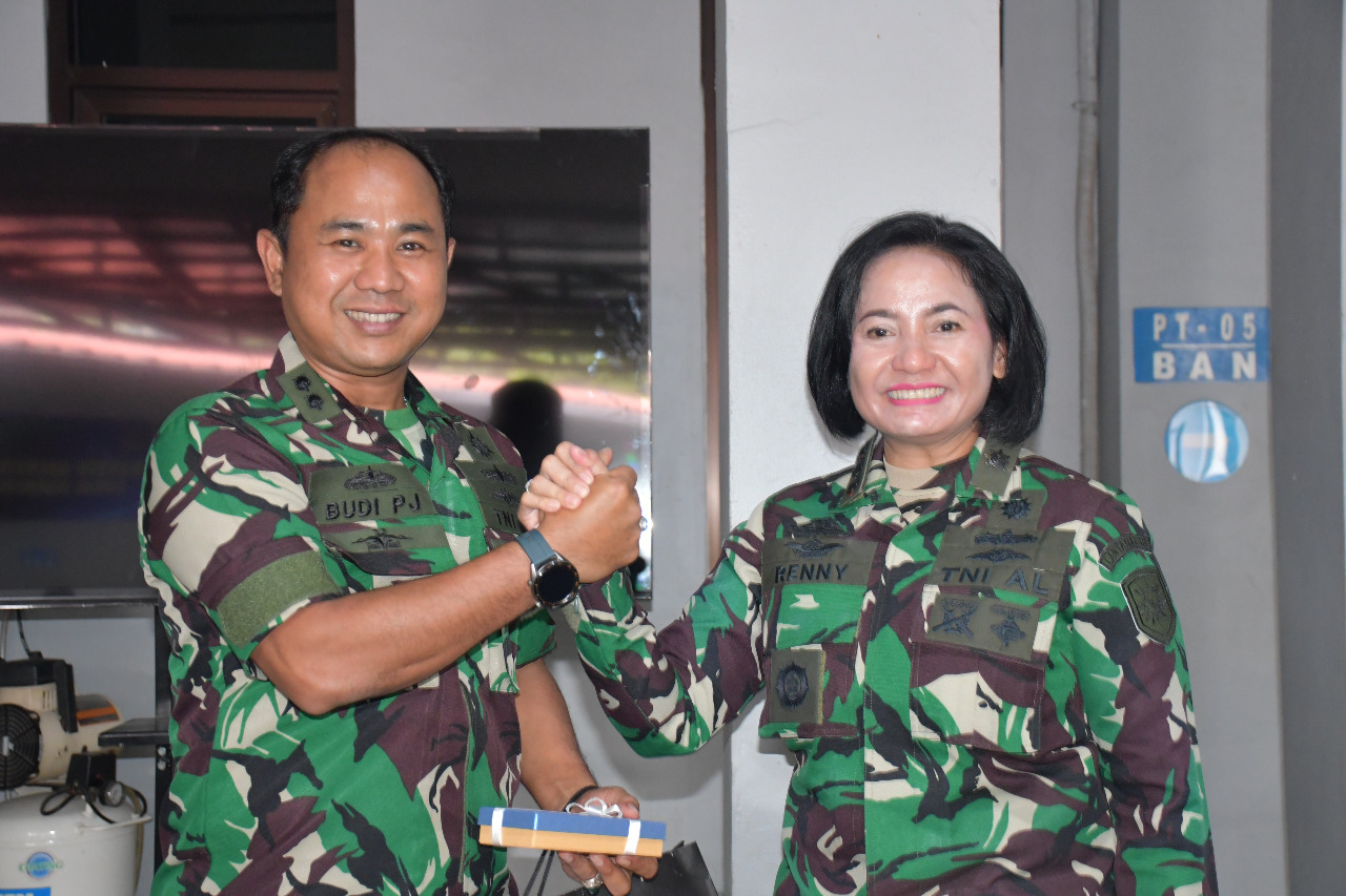 Komandan Pangkalan TNI Angkatan Laut (Lanal) Bandung Kolonel Laut (KH/W) Dr. Renny Setiowati, S.T., M.Sc., M.Tr.Hanla., memimpin lepas tugas Palaksa Lanal Bandung dan Dandenpom Lanal Bandung di Markas Komando (Mako) Lanal Bandung, Jalan Aria Jipang No. 8 Kota Bandung, Senin (17/10/2022).