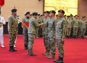 Kegitan selanjutnya Letkol Inf Aditya Wira Respati didampingi Ibu Nanda Aditya Wira Respati melewati gerbang Pora dan lorong prajurit untuk mengantarkan Macan kumbang 44 menerima jajar kehormatan. (Penkostrad).