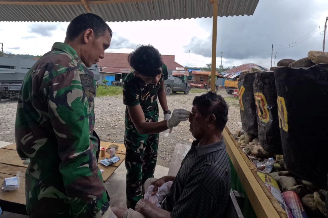 Nduga, MetropolitanPost.id – Satgas Mobile Yonif 411/Pandawa Kostrad melalui Tim Kesehatan Pos Kotis memberikan pertolongan pertama kepada warga yang mengalami kecelakaan lalu lintas di Distrik Keneyam, Kabupaten Nduga, Provinsi Papua Pegunungan, Sabtu (2/11/2023).