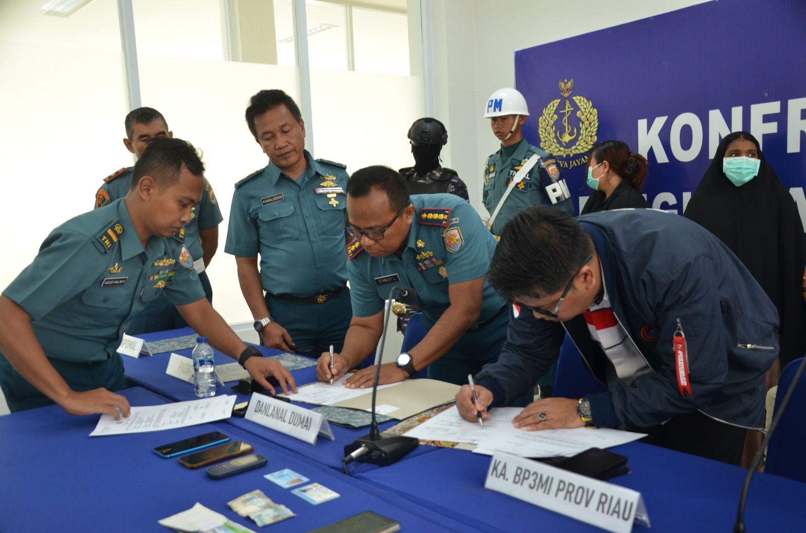 Selanjutnya 1 (satu) orang calon Pekerja Migran Indonesia (PMI) diserahkan oleh Lanal Dumai kepada Badan Pelayanan Perlindungan Pekerja Migran Indonesia (BP3MI) Provinsi Riau dan 4 (empat) Warga Negara Asing (WNA) diserahkan ke Imigrasi Kelas I Kota Dumai untuk pendalaman dan proses lebih lanjut.