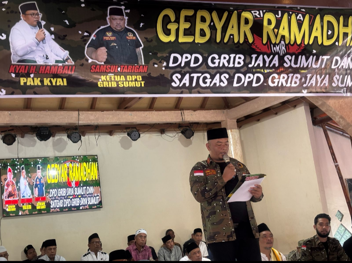 Ketua Panitia acara Gopinda Tarigan mengatakan dalam kata sambutannya mengucapkan puji dan syukur serta ucapkan ribuan rasa terima kasih yang tak terhingga kepada (Bp) Kiyai Muhtarom dan (Bp) Kiyai Ahmad Khambali serta doa tulus dari adik-adik yatim piatu yang hadir di acara gebyar ramadhan bersama Grib Jaya Sumut.
