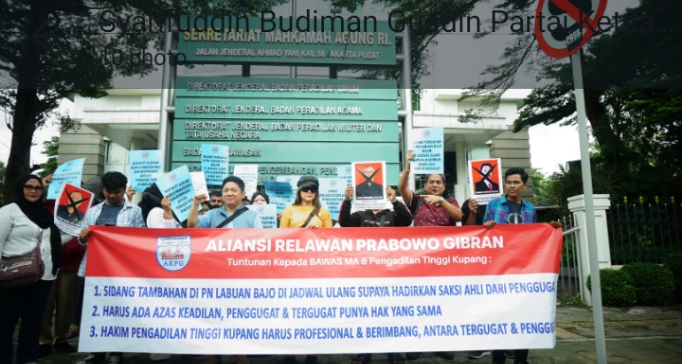 Sementara Koordinator Nasional Aliansi Relawan Prabowo Gibran (Kornas ARPG) Syafrudin Budiman yang ikut orasi, mengajukan 3 tuntutan dalam aduan dan laporan 3 Majelis Hakim PT Kupang Bawas MA RI. Diantaranya sebagaimana dibawah ini: