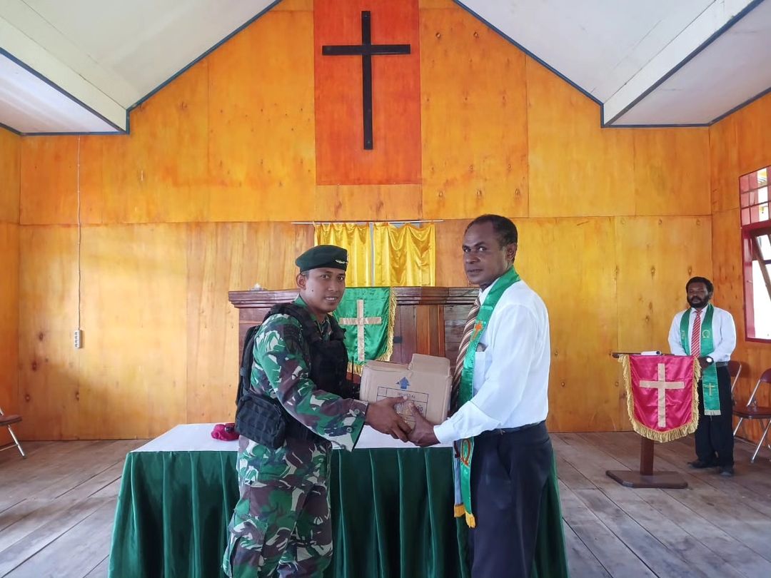 “Seperti yang dilaksanakan hari Minggu ini, dan momen-momen ibadah sebelumnya, Satgas telah mendistribusikan bantuan yang diberikan oleh Pangkostrad berupa Alkitab untuk masyarakat Kabupaten Nduga,” ungkapnya.