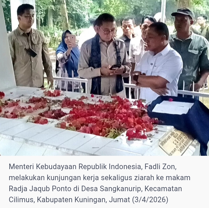 METROPOLITAN POST— YM. Iftiqar S.A. Ponto, mewakili keluarga besar Ponto-Pontoh, menyampaikan apresiasi setinggi-tingginya dan ucapan terima kasih kepada Fadli Zon atas kunjungan kerja sekaligus ziarah ke makam Raja Jacob Ponto di Desa Sangkanurip, Kecamatan Cilimus, Kabupaten Kuningan, Jawa Barat, pada 3 April 2026.