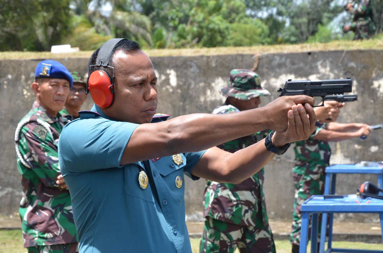 Prajurit Pangkalan TNI AL Dumai menggelar kegiatan latihan menembak TW IV TA. 2022 guna asah naluri tempur dan untuk mengetahui skill serta mengukur kemampuan menembak. Kegiatan dilaksanakan di Lapangan Tembak Satradar 232 Dumai, Jalan Radar, Kelurahan Bukit Nenas, Kecamatan Bukit Kapur, Kota Dumai, Kamis (20/10/2022).
