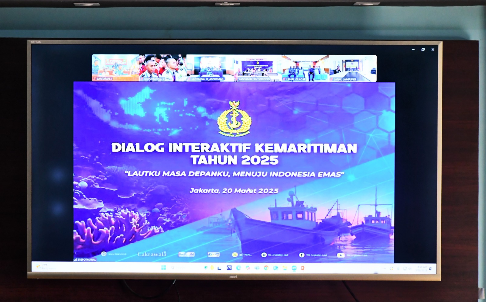 TNI AL, Belawan,- Asisten Potensi Maritim (Aspotmar) Danlantamal I Kolonel Mar Hendra Zarnadi, S.Sos., M.Si., M.Tr. Opsla., mengikuti Dialog Interaktif Kemaritiman Tahun 2025 melalui Vicon yang dipimpin oleh Aspotmar Kasal Mayjen TNI (Mar) Hermanto, bertempat di Ruang Puskodal Mako Lantamal I, Jalan Serma Hanafiah No.01, Belawan, Sumatera Utara, Kamis (20/3/2025).