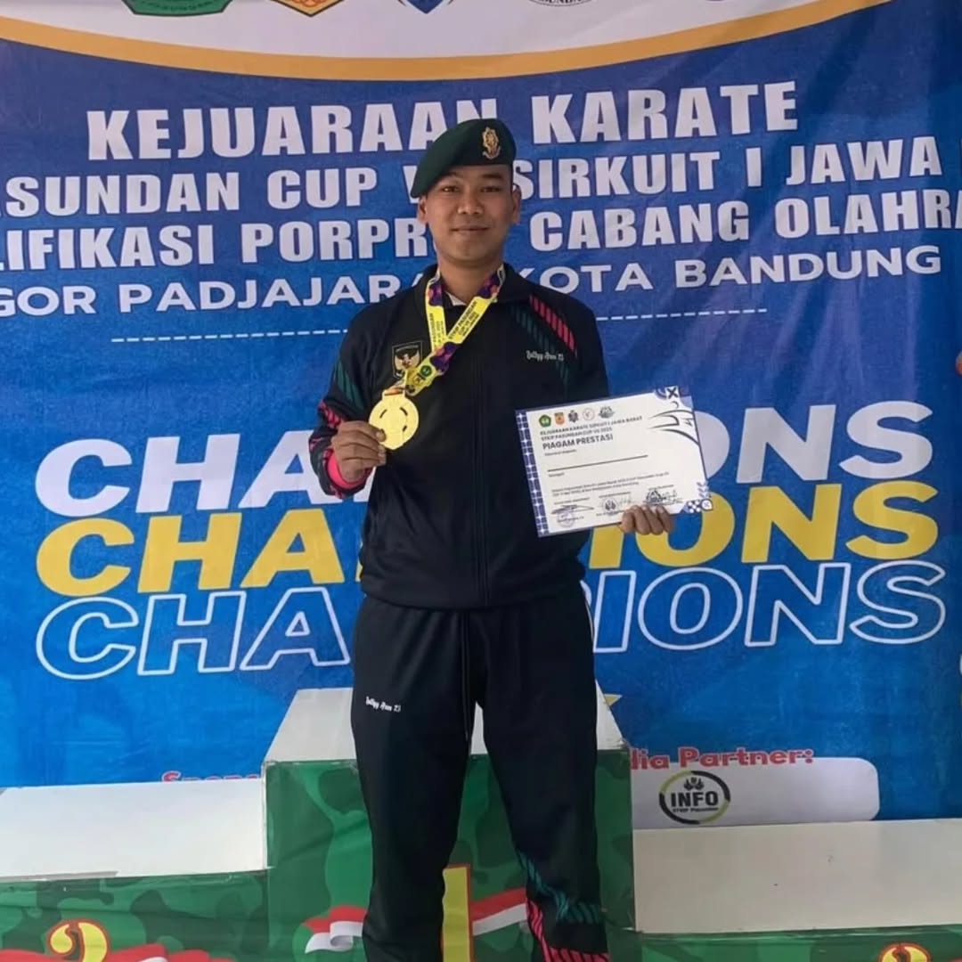 Bandung — Prestasi membanggakan kembali ditorehkan oleh prajurit Yonarmed 13/ Nanggala/1/1 Kostrad. Pratu Luthfy Ilham Julian, berhasil meraih Juara 1 Kelas Senior Kumite Open +84 KG Putra dalam Kejuaraan Karate Sirkuit 1 Jawa Barat 2025 yang diselenggarakan di GOR Padjajaran, Bandung, pada Sabtu (10/5/2025).