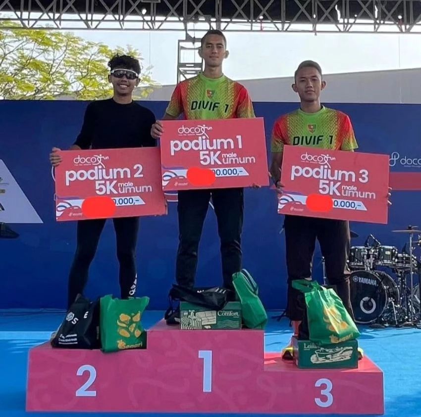 Pada Event Doco Run 2024 kategori 5K berhasil meraih Juara 1 Praka Dobby Satuan Yonif 328/Dirgahayu dengan catatan waktu 16 Menit 08 Detik, Juara 3 Sertu Danu Ma’arif Satuan Yonarhanud 1/Purwa Bajra Cakti dengan catatan waktu 16 Menit 20 Detik.