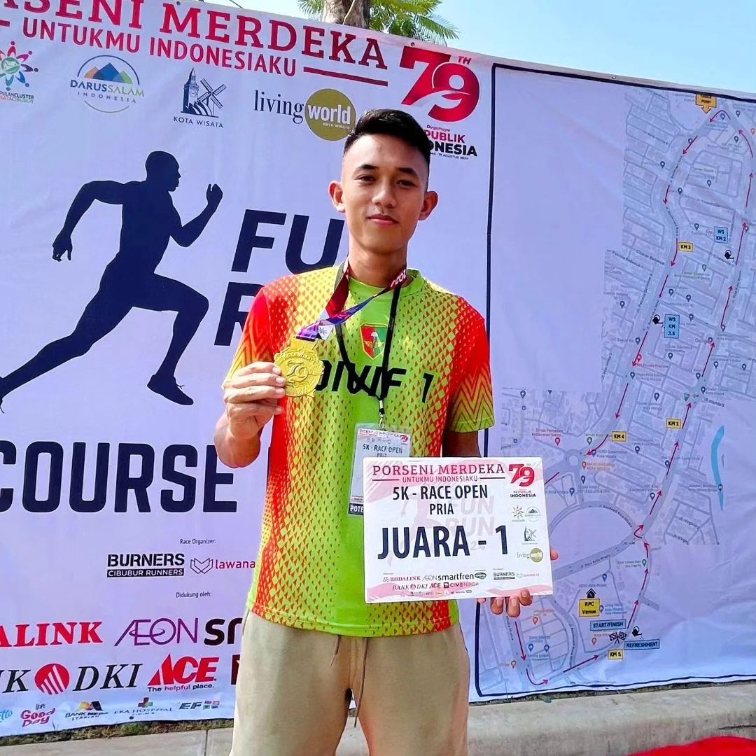 Dalam Event Cilacap Utara Merdeka Run Kategori 5K, Prada Perdamaian Laia dari Satuan Yonif 323/Buaya Putih juga berhasil merebut Juara 1 dengan catatan waktu 16 menit 10 detik.