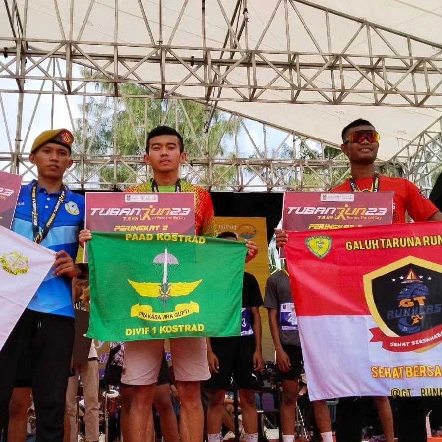 Event Tuban Run 7,4K berhasil meraih Juara 2 Pratu Abdi Satuan Yonif 303/Setia Sampai Mati dengan catatan waktu (24′.44″), Juara 3 Prada Kismadi Satuan Yonif 321/Galuh Taruna dengan catatan waktu (26′.06″).
