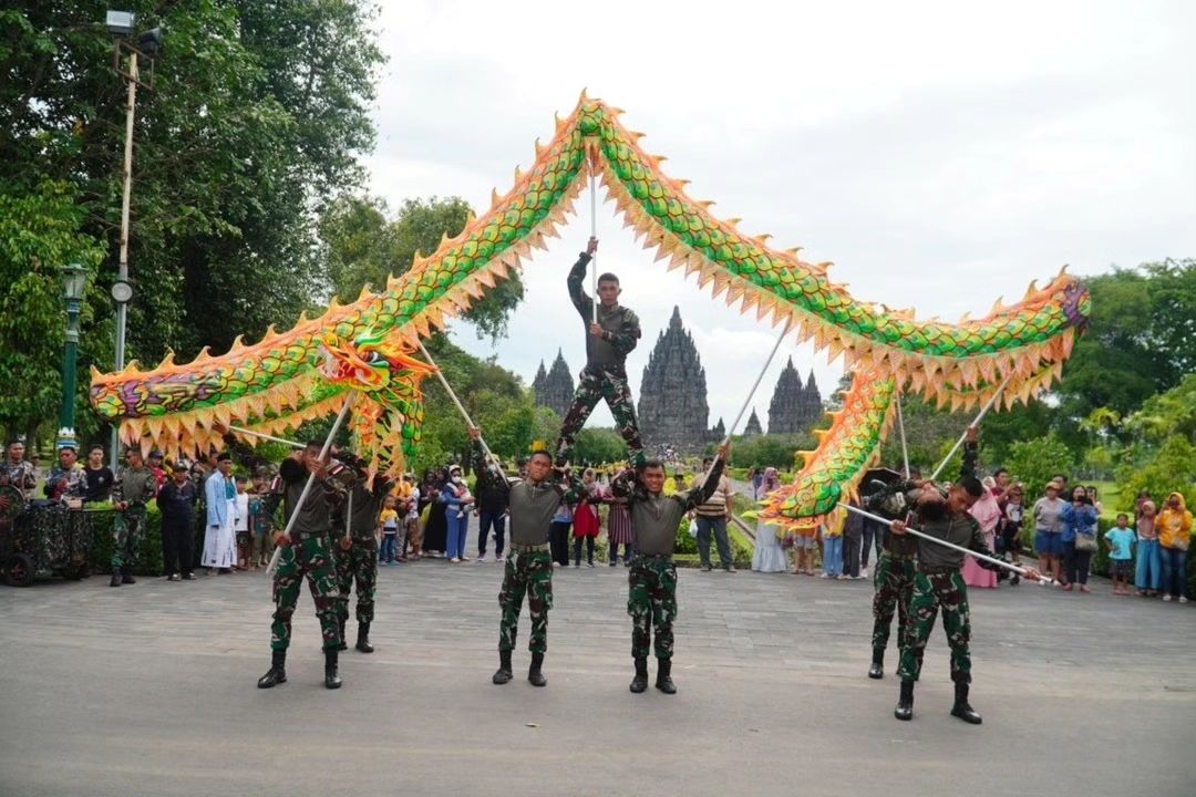 Atraksi Barongsai Yonarmed 11 Kostrad Pukau Wisatawan di Candi Prambanan