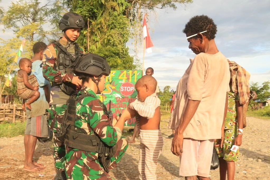 “Terima kasih bapak TNI 411 Pandawa, kami semua senang dapat baju baru, anak-anak pun juga senang. Sekali lagi terimakasih bapak TNI, hormat wa wa wa”, ucap Mama Milante setelah mendapat baju baru dari Pasukan Pandawa Kostrad. (Penkostrad).
