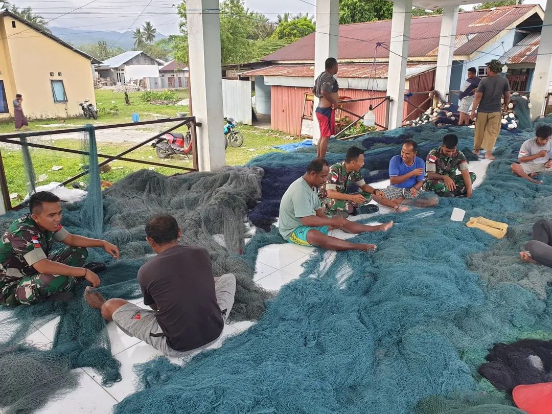 “Hari ini saya membantu nelayan menyiapkan peralatan sebelum pergi melaut, dengan kondisi jaring yang sering mengalami kerusakan akibat tersangkut karang, kita bantu mereka agar siap untuk digunakan,’’ katanya.