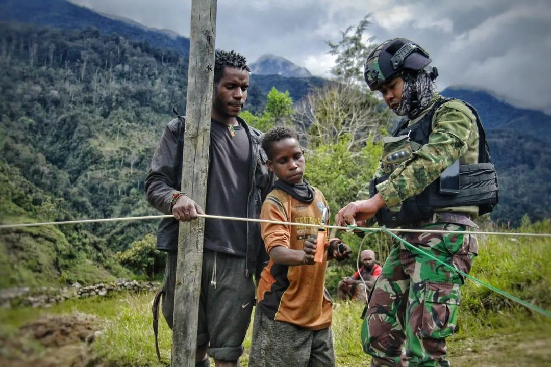Bantu Pasang Listrik Kampung Nduga Papua, Satgas Yonif R 321 Kostrad Atasi Kesulitan Rakyat