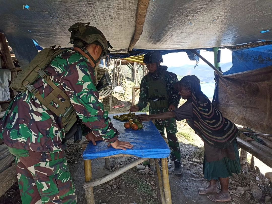 MetropolitanPost.id – Satgas Mobile Yonif 323 Kostrad Pos Pintu Jawa Melalui Kegiatan Borong Hasil Tani (Rosita) Memborong Jualan Hasil Tani Mama Papua yang di jual Ke Pos Pintu Jawa, Distrik Sinak, Kabupaten Puncak, Papua Tengah, Senin (01/07/2024)