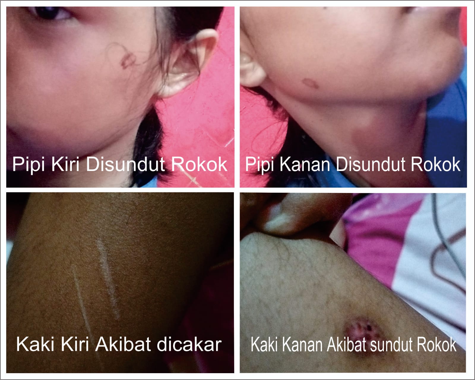 Lebih biadab lagi ketika dirumah sang ayah *G* kembali melakukan penganiayaan kembali menginjak-injak, menendang, dan mencekiknya bahkan *G* tega melakukan sundutan rokok kebagian wajah, dan tubuh anaknya sendiri sehingga saat ini anaknya C mengalami trauma yang begitu serius dan selalu ketakutan histeris.