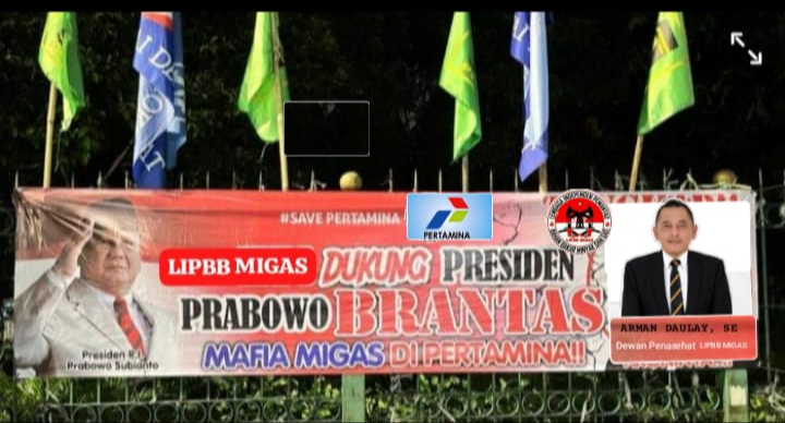 TOP !! Beredar Spanduk Dukungan Buat Presiden Prabowo Berantas Mafia Migas, Ini Komentar Arman Daulay  Bakal Calon Ketum LIPBB Migas