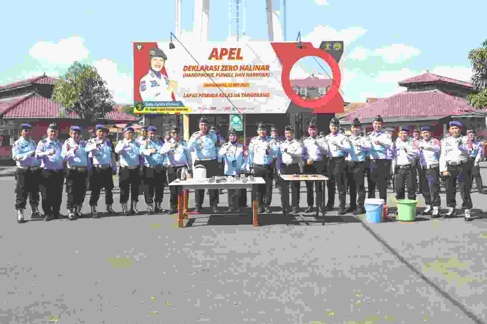 Bertindak sebagai pembina apel Plt Kalapas Pemuda Kelas IIA Tangerang Salis Farida Fitriani, bertempat di Lapangan upacara Lapas Pemuda Kelas IIA Tangerang pada kegiatan apel tersebut di bacakan Ikrar Deklarasi Zero Halinar diikuti oleh seluruh peserta apel kemudian dilanjutkan dengan penandatanganan Piagam Deklarasi oleh pejabat sturuktural dan komandan regu penjagaan.