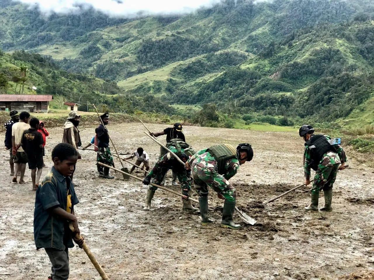 Bersama Warga Distrik Yigi, Prajurit Kostrad Siap Operasionalkan Bandara di Pegunungan Papua