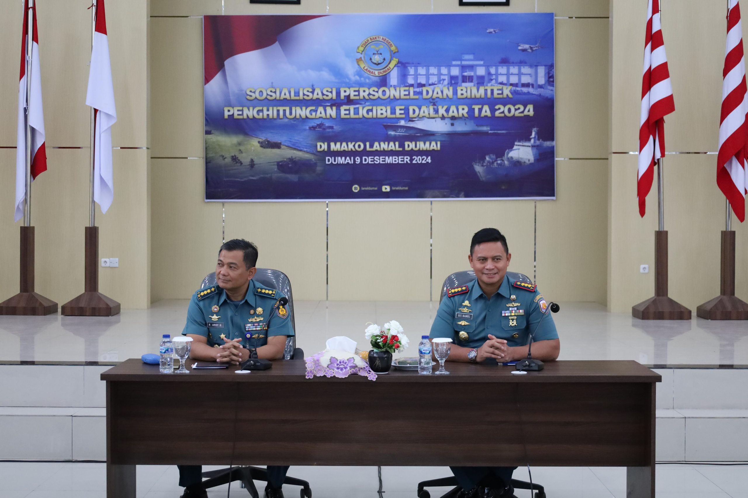 TNI AL, Dumai,- Bertempat di Aula Wijaya Kusuma Mako LanaL Dumai, Jalan Yos Soedarso No. 01 Kota Dumai, Personel yang terdiri dari Perwira, Bintara, Tamtama dan Pegawai Negeri Sipil (PNS) Lanal Dumai mengikuti Sosialisasi Bimtek Perhitungan Eligible dari Tim Staf Personel TNI Angkatan Laut (Spersal), Senin (09/12/2024).