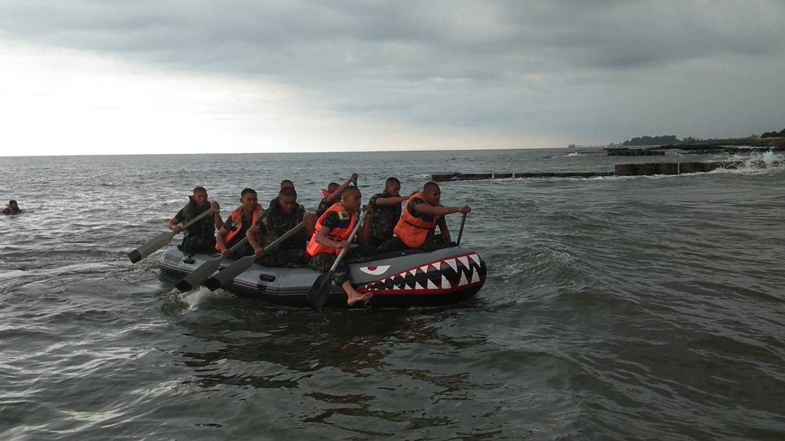 Bintara dan Tamtama Remaja Lanal Lhokseumawe Laksanakan Latihan Dayung Perahu Karet