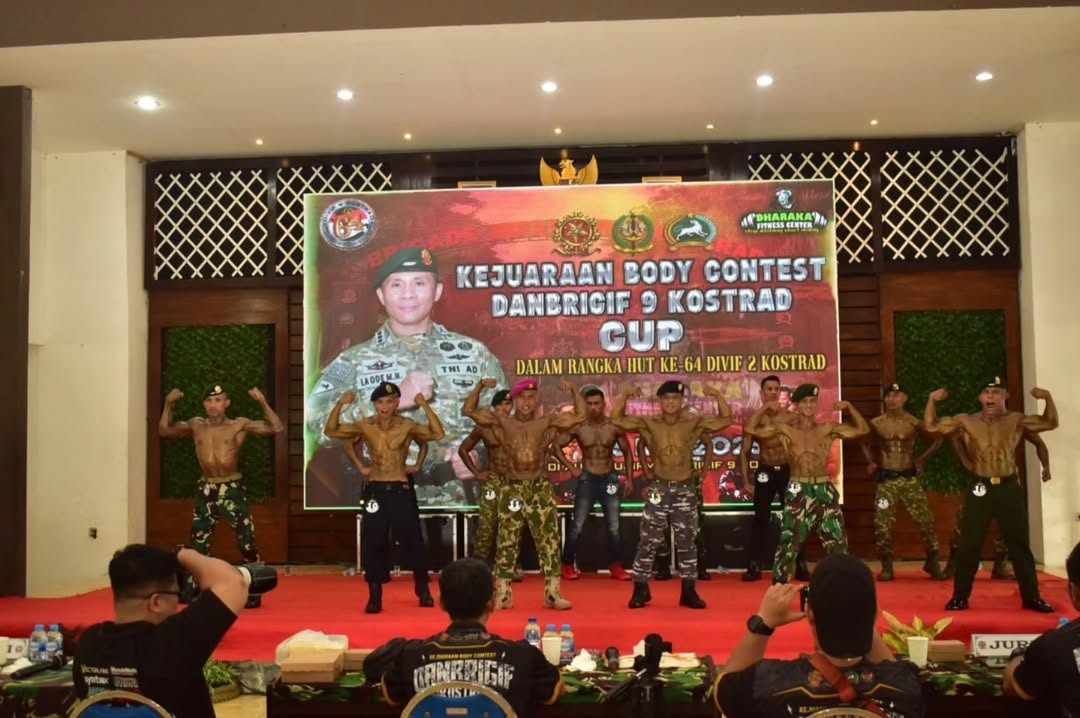 Brigade Infanteri 9 Kostrad menggelar Body Contest Tahun 2025 dalam rangka menyemarakkan HUT ke-64 Divisi Infanteri 2 Kostrad yang diikuti ratusan peserta TNI POLRI dan umum bertempat di Aula Sudirman Brigif 9 Kostrad, Jember, Minggu (25/05/2025).