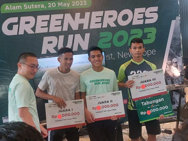 Dalam event GreenHeroes Run 2023 ini, Prajurit Yonif R 323/BP Kostrad atas nama Pratu Hendrik Nainggolan berhasil finish di urutan ketiga dengan waktu 34 menit 10 detik dalam kategori 10K Umum Putera.