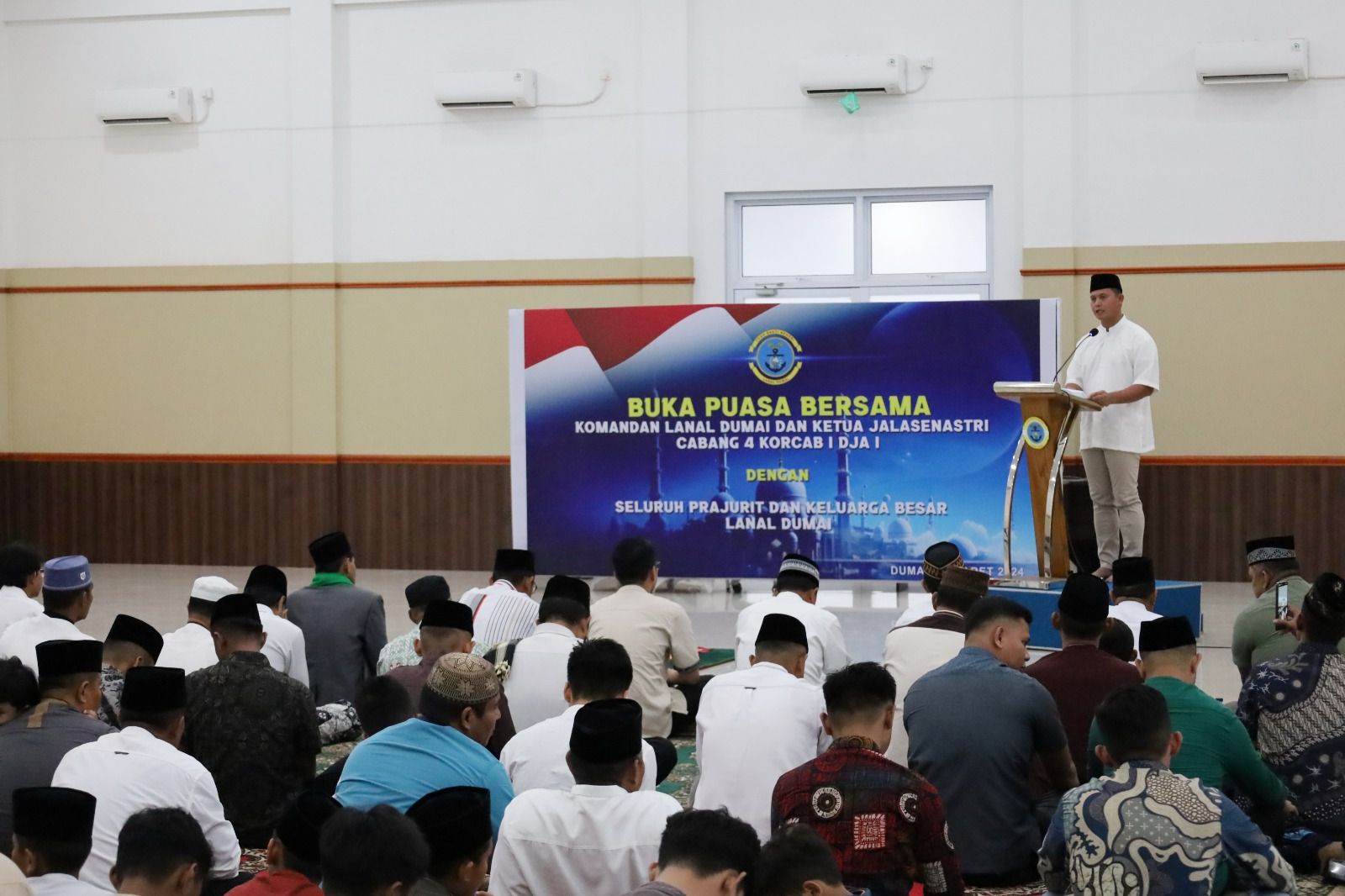 MetropolitanPost.id – Komandan Lanal Dumai Kolonel Laut (P) Boy Yopi Hamel didampingi Ketua Jalasenastri Cabang 4 Korcab I DJA I Ny. Gressy Hamel melaksanakan acara Buka Puasa Bersama Keluarga Besar Lanal Dumai yang dilaksanakan di Gedung Wijaya Kusuma, Mako Lanal Dumai, Jalan Yos Sudarso, Kecamatan Bulu Kasal, Kota Dumai, Jum’at (15/04/2024).