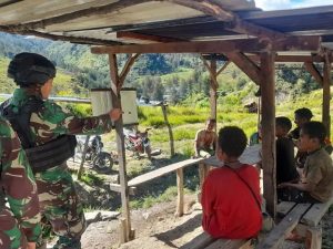 MetropolitanPost.id – Pendidikan merupakan hal pokok yang wajib didapatkan bagi seluruh generasi penerus tanpa terkecuali, termasuk daerah wilayah Papua. Dalam rangka mewujudkan cita-cita bangsa dan Negara dalam mencetak generasi muda yang inovatif, Satgas Satuan Organik Yonif R 303/SSM bantu ajarkan pentingnya pendidikan kepada anak SD masyarakat Distrik Mayuberi, Kab Ilaga Utara, Papua. Kamis (29/09/2022).