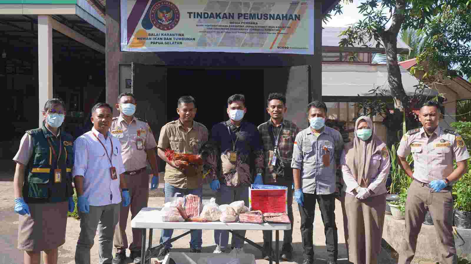 Terdapat satu ekor ayam kampung asal Asmat yang ditangkap saat petugas melakukan pengawasan di Pelabuhan Laut Merauke. Kemudian di Kargo Bandara Mopah petugas berhasil menahan daging babi sebanyak 4 kg dan olahan babi 2 kg asal Tangerang, dan daging babi sebanyak 6 kg dan daging sapi sebanyak 3 kg asal Jakarta Selatan.