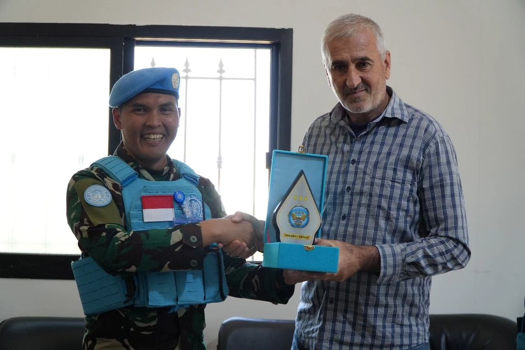 Deputy of Commander menyampaikan permohonan maaf, Komandan Satgas Yonmek TNI Konga XXIII-R/UNIFIL Kolonel Inf Ragung Ismail Akbar, S.Sos., M.I.Pol. belum bisa hadir dikarenakan hari ini sedang melaksanakan rapat dengan Sector East Commander. Dalam kesempatan tersebut Wadansatgas memberikan cinderamata blangkon dan selendang dari Indonesia yang dipakaikan langsung kepada Mr. Fudel Karim serta penyerahan plakat dari Satgas Indobatt.
