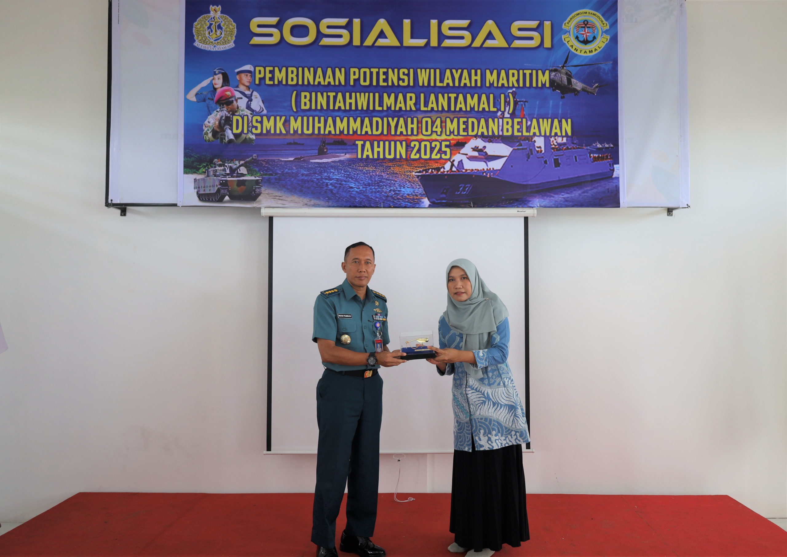 TNI AL, Belawan,- Pangkalan Utama TNI Angkatan Laut I (Lantamal I) melaksanakan Sosialisasi Pembinaan Potensi Wilayah Maritim (Bintahwilmar) Tahun 2025 kepada siswa-siswi SMK Muhammadiyah 04 Medan, bertempat di Gedung Sekolah SMK Muhammadiyah 04 Medan Belawan, Sumatera Utara, Kamis (10/4/2025).