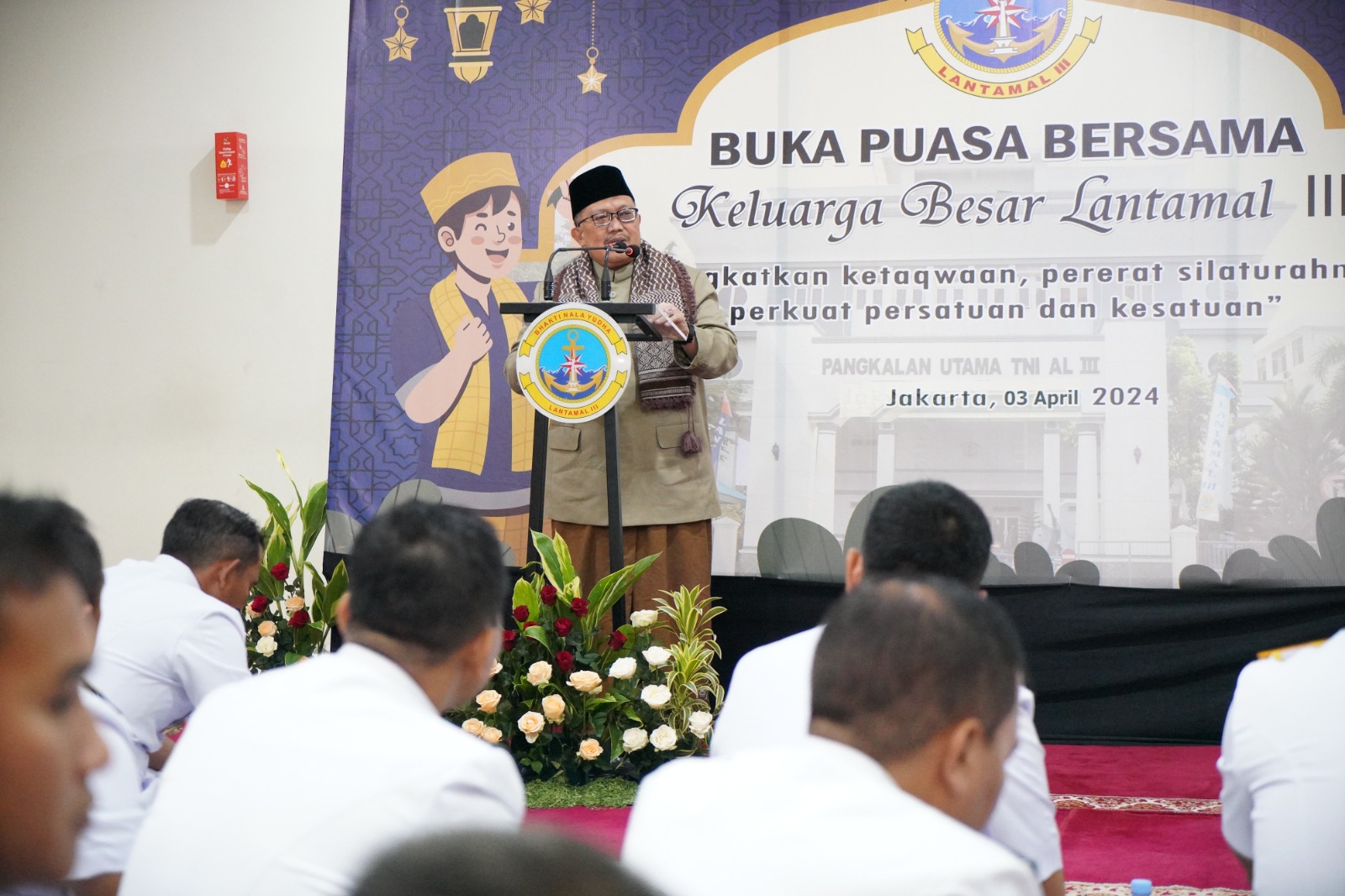 Danlantamal III Jakarta di tempat terpisah mengatakan “Salat Magrib dan buka puasa bersama dilaksanakan untuk mempererat hubungan silaturahmi keluarga besar Lantamal III Jakarta dan meningkatkan keimanan serta ketakwaan personel kepada Allah Subhanahu wa Ta’ala. Saya menghimbau kepada seluruh prajurit dan Pegawai Negeri Sipil (PNS) di lingkungan Lantamal III Jakarta untuk selalu meningkatkan disiplin dalam beribadah di sela-sela kesibukan bekerja dalam mengabdikan diri kepada TNI Angkatan Laut, TNI, Bangsa dan negara. Jadikan keseimbangan antara semangat beribadah baik di dalam maupun di luar bulan suci Ramadhan dengan semangat bekerja sebagai pondasi kekuatan dalam mewujudkan TNI Angkatan Laut dan khususnya Lantamal III Jakarta yang profesional, tangguh, dan modern”.