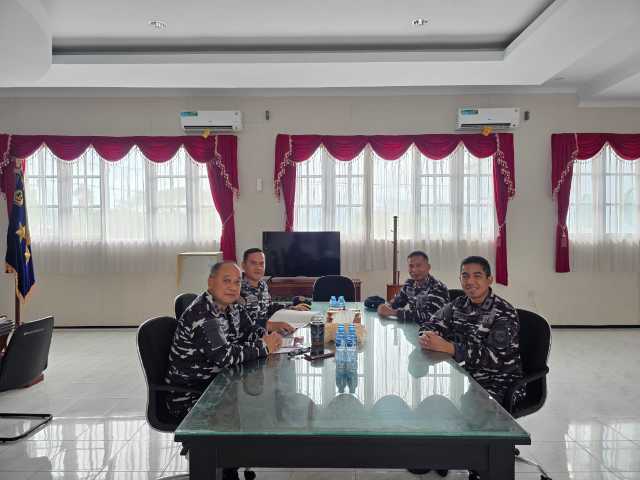 Dankodaeral IX Laksda TNI Hanarko Djodi P. didampingi Asrena Dankodaeral IX dan Danpomal Kodaeral IX menerima Courtesy Call Danguskamla Koarmada III Laksma TNI Tomi Erizal didampingi Asops Danguskamla Koarmada III dan Komandan KRI Kapak Letkol Laut (P) Nugroho A. W, di Mako Kodaeral IX.