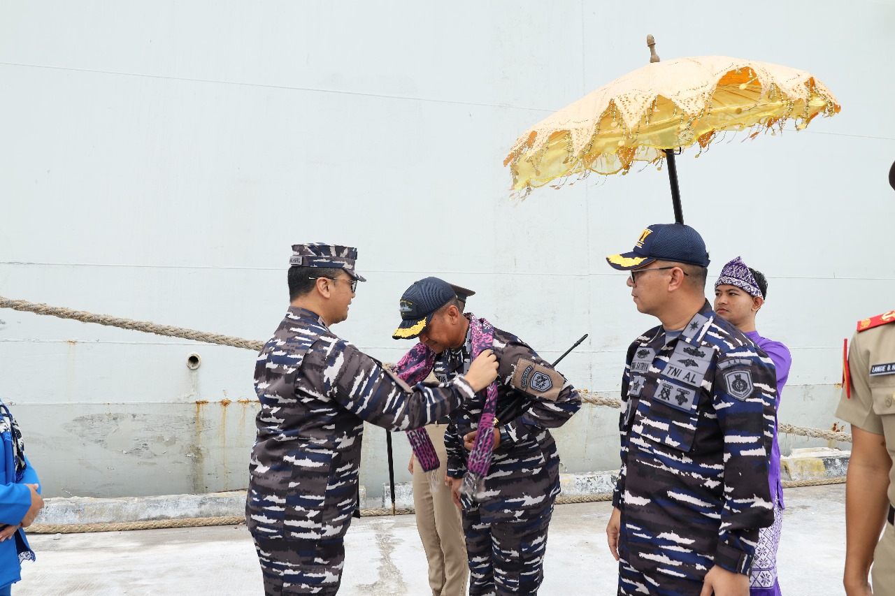 TNI AL- Dispenlantamal3. Komandan Pangkalan TNI AL (Danlanal) Bangke Belitung (Babel) Kolonel Laut (P) Erwin Herdiyanto memimpin langsung Merflug kedatangan KRI Semarang – 594 yang mengangkut Taruna Akademi Angkatan Laut dalam rangka Latek Prajalasesiya Taruna Tahun 2025 di dermaga Pelabuhan Pelindo Belinyu Kab. Bangka, Minggu (02/02/2025).