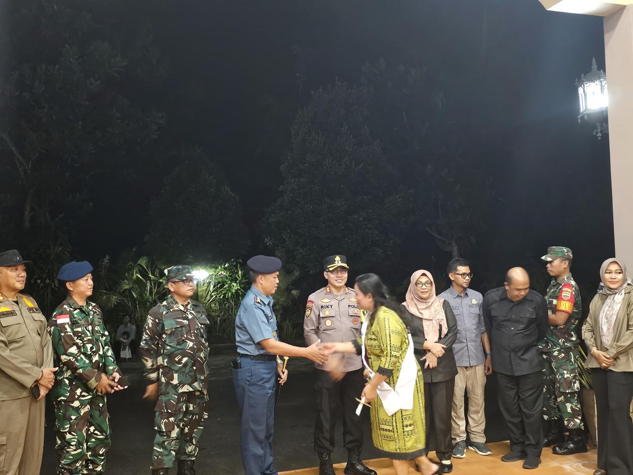 Saat melaksanakan peninjauan, Danlanal Bintan Kolonel Laut (P) Dr. Eko Agus Susanto, S.E., M.M., bersama Kapolres Bintan AKBP Riky Iswoyo, S.I.K., M.M., didampingi Asisten 1 Sekda Bintan, Ketua DPRD Bintan, Kabid Gakkum Satpol PP Bintan, Ketua FKUB Bintan.