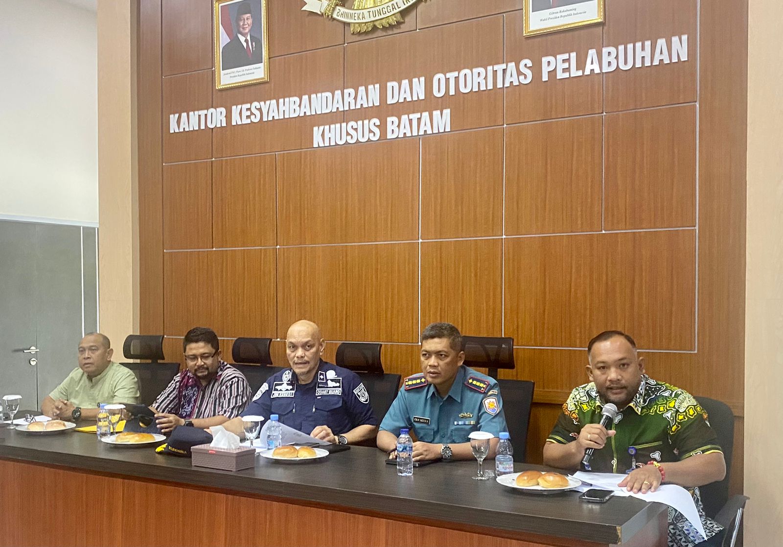 TNI AL, Tanjung Pinang,- Bertempat di Kantor Kesyahbandaran dan Otoritas Pelabuhan Khusus Batam, Danlanal Bintan Kolonel Laut (P) Dr. Eko Agus Susanto, S.E., M.M., menghadiri rapat terkait situasi cuaca buruk yang bisa menimbulkan kecelakaan laut di Perairan Batam dan Bintan, Sabtu (18/01/2025).