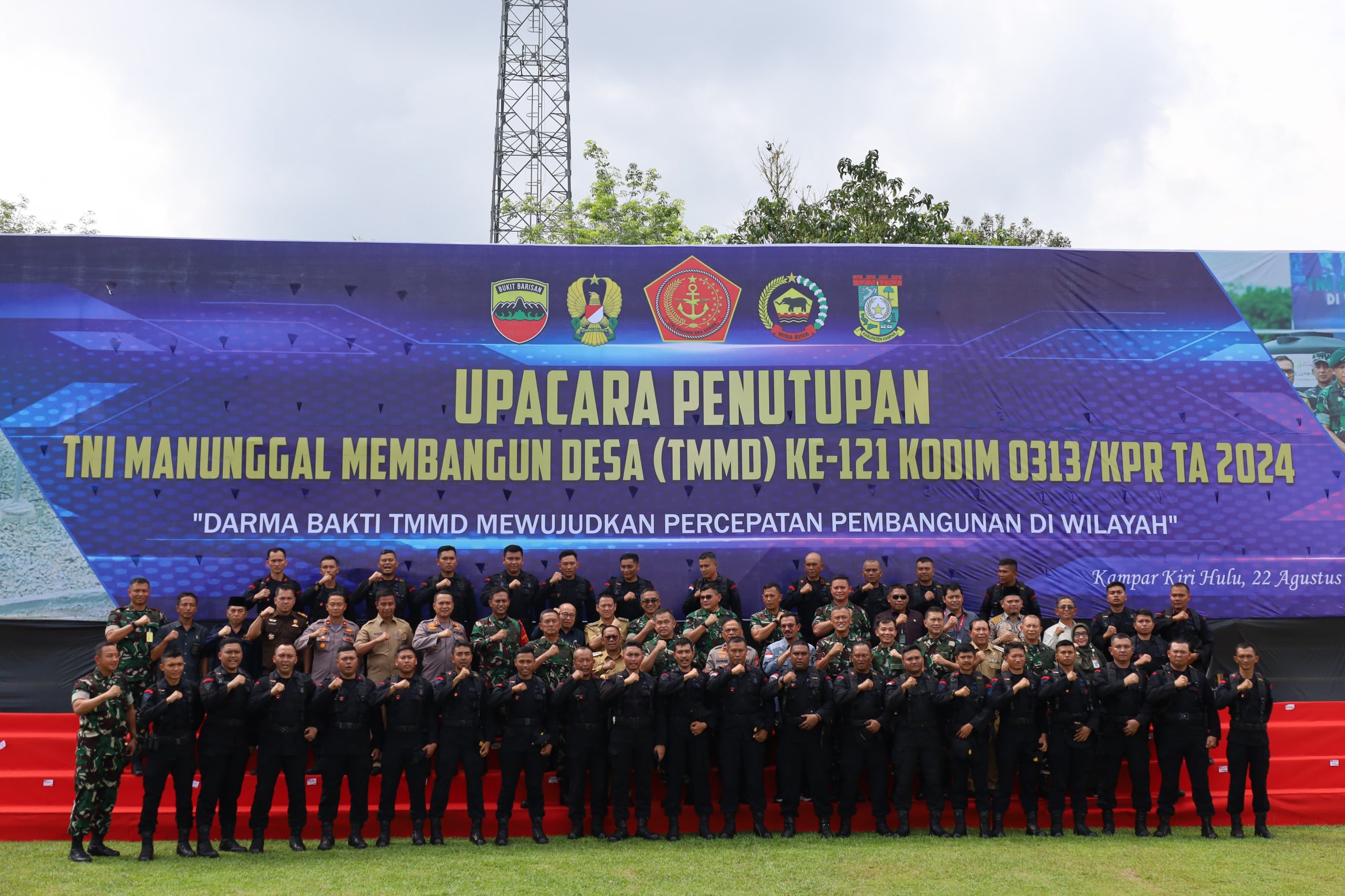 Upacara Penutupan TMMD Ke-121 di Kabupaten Kampar dipimpin langsung oleh Kepala Staf Angkatan Darat (Kasad) Jenderal TNI Maruli Simanjuntak, M.Sc.