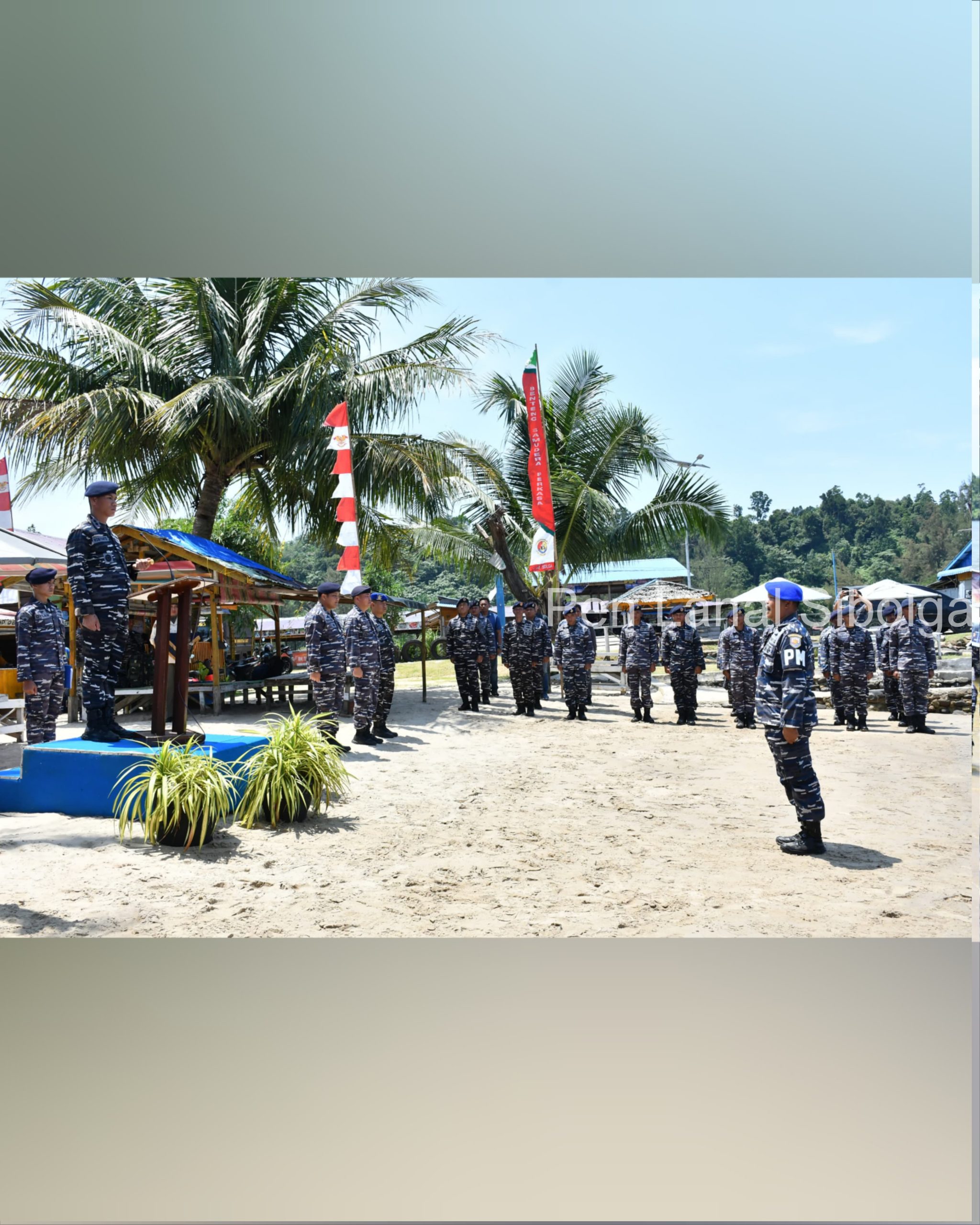 Upacara diakhiri dengan penyiraman air bunga dan ucapan selamat bergabung oleh Danlanal Sibolga beserta para prajurit sebagai tanda diakhirinya masa orientasi 7 orang Bintara dan Tamtama tersebut.