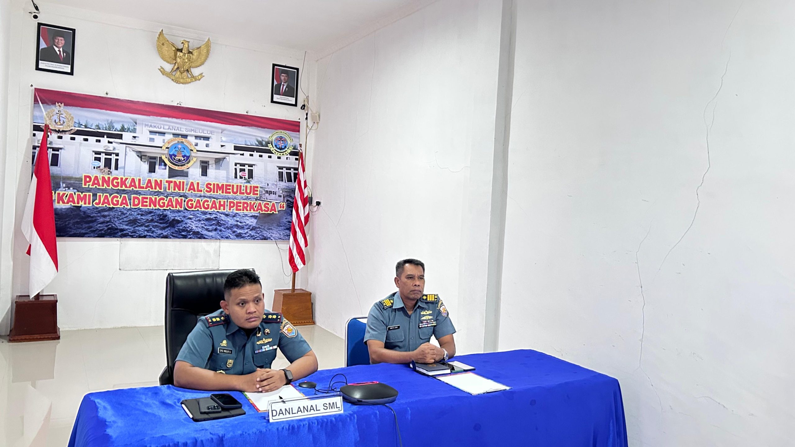 TNI AL, Simeulue,- Komandan Pangkalan TNI Angkatan Laut Simeulue Letkol Laut (P) Oyu Mulia Sukmana, S.T., M.T., M.Tr. Opsla., didampingi Pasintel Lanal Simeulue Kapten Laut (P) Amir Husin, mengikuti Rapat Kerja Teknis Penerangan (Rakernispen) TNI Angkatan Laut Tahun 2025 secara Video Conference (Vicon), Senin (24/3/2025).
