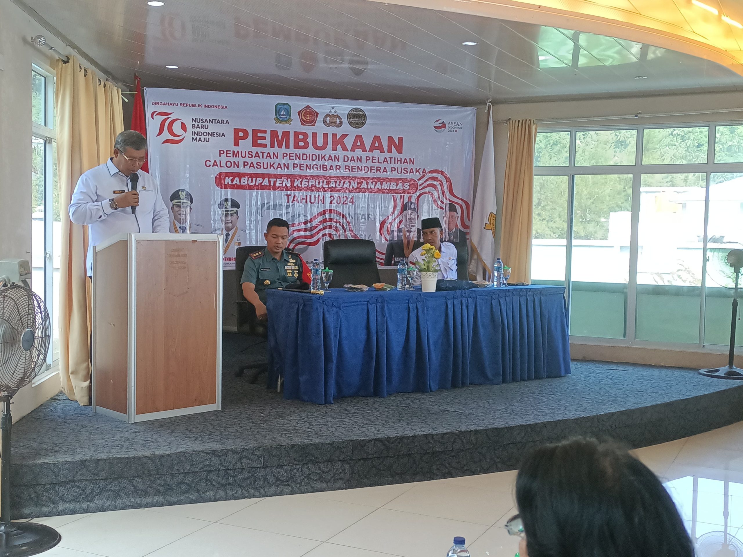 MetropolitanPost.id – Komandan Pangkalan TNI AL Tarempa Letkol Laut (P) Ari Sukamana, S.E., M.Tr. Opsla., menghadiri acara Pembukaan Pemusatan Pendidikan dan Pelatihan Calon Pasukan Pengibar Bendera Pusaka Kabupaten Kepulauan Anambas Tahun 2024, bertempat di Aula Gedung Tarempa Beach, Kecamatan Siantan, Kabupaten Kepulauan Anambas, Rabu (31/07/2024).