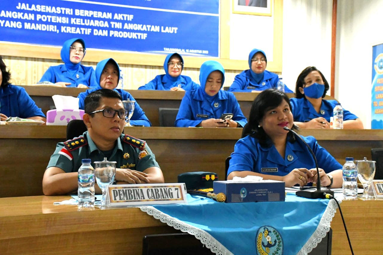 MetropolitanPost.id – Komandan Lanal Tanjung Balai Asahan Letkol Laut (P) Aan Prana Tuah Sebayang, S.E., D.W.C., beserta Ketua Cabang 7 Korcab I DJA I Ny. Elisa Aan Sebayang dan Pengurus Ikuti Tatap Muka dengan Pembina Utama Jalasenastri Kepala Staf Angkatan Laut Laksamana TNI Muhammad Ali, S.E., M.M., M.Tr.Opsla., secara Virtual dalam Rangka HUT Ke-77 Jalasenastri dengan tema “Jalasenastri Yang Berperan Aktif Mengembangkan Potensi Keluarga TNI Angkatan Laut Yang Mandiri, Kreatif dan Produktif”, Selasa (15/8/2023).