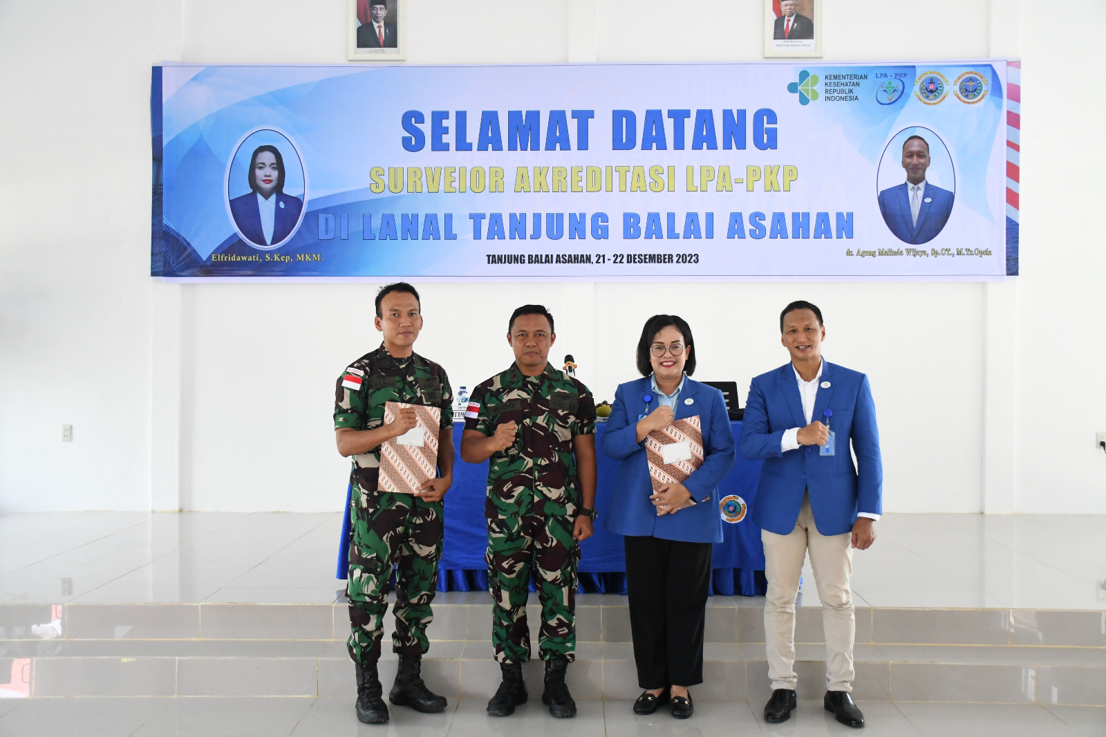 MetropolitanPost.id – Komandan Lanal Tanjung Balai Asahan Letkol Laut (P) Wido Dwi Nugraha, S.E., M.Tr. Opsla., menutup kegiatan Survei Akreditasi Balai Pengobatan (BP) Lanal Tanjung Balai Asahan dari Lembaga Penyelenggara Akreditasi Pelayanan Kesehatan Paripurna (LPA-PKP) oleh Ketua Surveior Elfridawati Sinulingga, S.Kep., MKM., dan Letkol Laut (K) dr. Agung Malinda Wijaya, Sp.OT., di Mako Lanal Tanjung Balai Asahan, Jalan Tanjung Berombang, Asahan Mati, Kecamatan Tanjungbalai, Kabupaten Asahan, Jumat (22/12/2023).