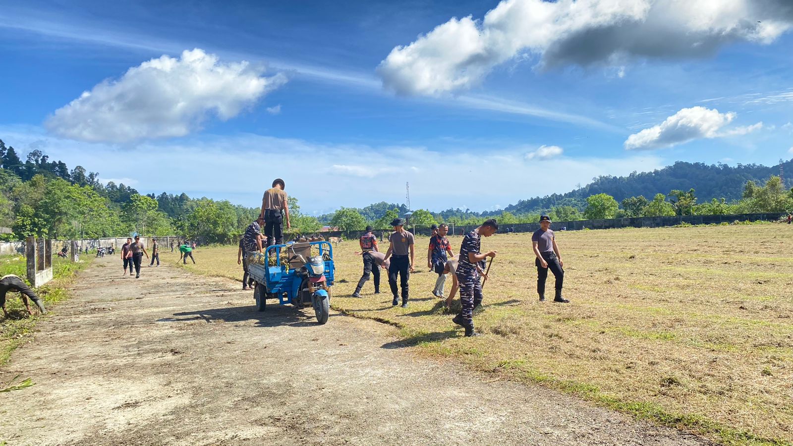 TNI AL, Simeulue, 25 Oktober 2024,- Prajurit Lanal Simeulue melaksanakan kegiatan gotong royong dan pembersihan lapangan sepak bola serta tribun dalam rangka persiapan Hari Sumpah Pemuda di Lapangan Sepak Bola Simeulue, Desa Suak Buluh, Kecamatan Simeulue Timur, Kabupaten Simeulue, yanh dilaksanakan selama dua hari 24-25 Oktober 2024.
