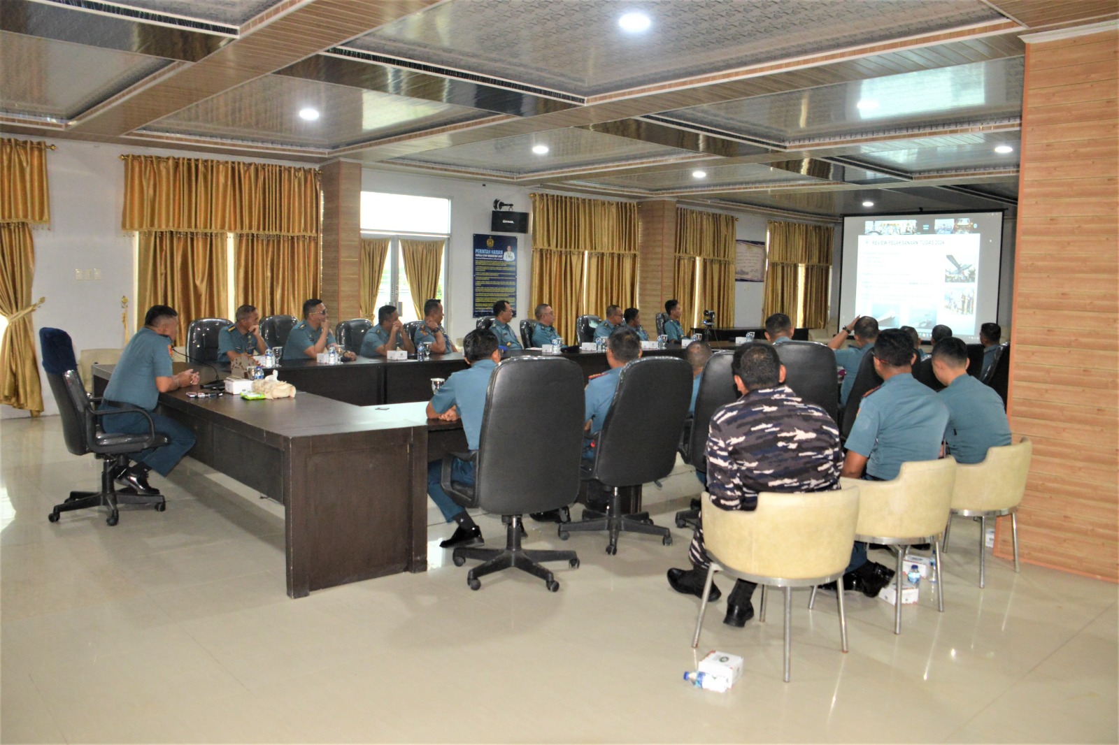 Turut hadir mendampingi Danlantamal I mengikuti pengarahan, seluruh Kadis dan Kasatker Lantamal I, serta para Komandan KRI yang sedang sandar di Dermaga Lantamal I.