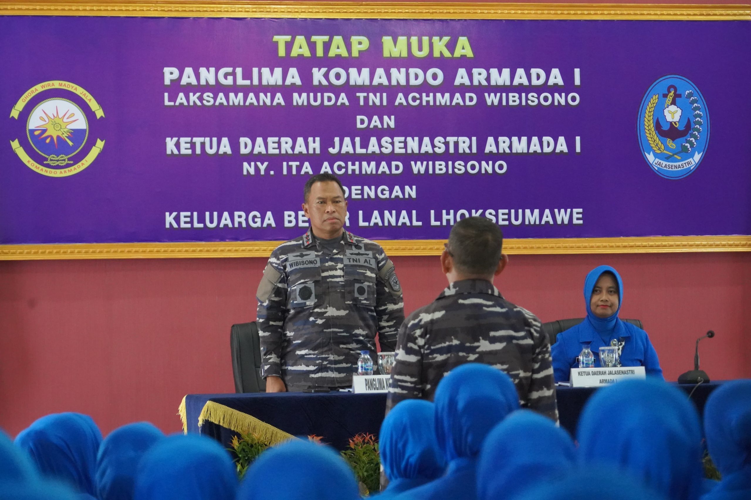 Dalam sambutannya, Pangkoarmada I menyampaikan bahwa dimana sekarang ini sedang marak-maraknya judi online dan pinjaman online, oleh karena itu jangan sampai para prajurit Lanal Lhokseumawe sampai terlibat akan hal tersebut, dikarenakan sudah ada terjadi, seperti adanya pemalakan antara senior terhadap juniornya yang disebabkan seniornya sering bermain judi online, menjaga istri dan putra–putrinya dalam pergaulan. Dimana saat ini maraknya peredaran Narkoba, apalagi di Aceh merupakan daerah rawan Narkoba dan jangan sampai keluarga anda terlibat, baik jadi kurir maupun bandar serta pengguna Narkoba.